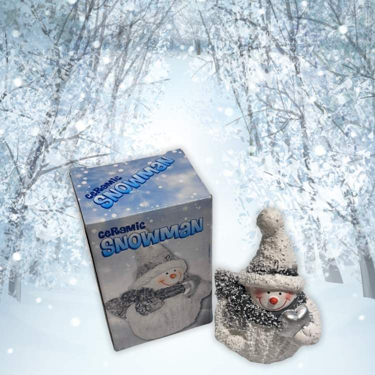 Spread holiday joy with this delightful ceramic snowman figurine. Each snowman is carefully packaged in a decorative box with a matching image, making it a perfect Christmas or holiday gift for students. Ideal for school Santa Shops, these figurines offer an affordable and charming addition to your gift selection.