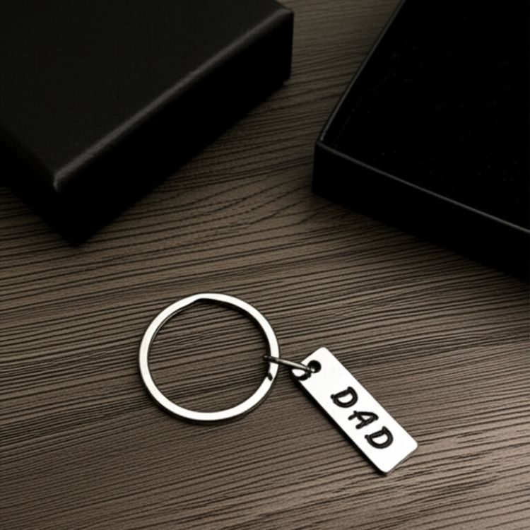 Show appreciation with our 'DAD' Keychain Gift Set. This silver-colored keychain, complete with a 'DAD' tag and elegant black gift box, makes a great gift for dads. Perfect for your school's Santa Shop or holiday gift program. Stock up on these affordable and heartwarming gifts today!