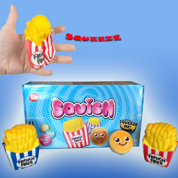 Fun Super squeezy squishy fast food squeezable toys. Fits in the palm of your hand. Squeeze and watch it shrink down to size and then reanimate itself back to its original size. Sold via assorted styles only.