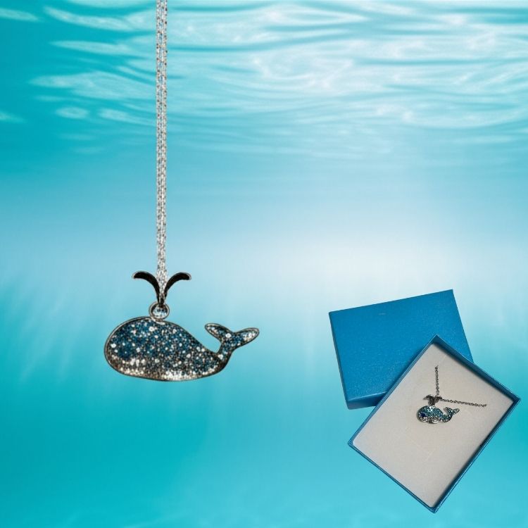 Sparkle and delight with this Crystal Whale Necklace! This beautiful silver-tone necklace features a charming whale pendant adorned with dazzling blue and clear crystals. Each necklace comes presented in a lovely blue gift box, making it a perfect and ready-to-give jewelry gift. A wonderful addition to your school's holiday gift shop or Santa Shop program. Makes a great gift for students to purchase for family and friends.