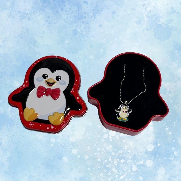 Looking for a charming and affordable addition to your school's holiday gift shop? This delightful silver-tone Penguin Pendant Necklace comes in an adorable penguin-shaped tin. It's a great gift item in the jewelry gifts category, and is suitable gifts for boys and girls. Perfect for your Santa Shop or holiday fundraiser! Get yours while supplies last.