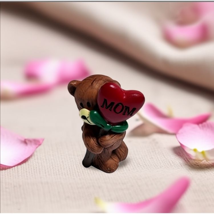 Show Mom some love with this adorable 'Mom Heart Bear Figurine'! This charming brown bear holds a red heart displaying the word 'MOM', making it a perfect addition to your school's Mom Gifts selection. Each figurine comes in a decorative box, ready for gifting. A thoughtful and affordable choice for holiday gift shops and Santa Shops.