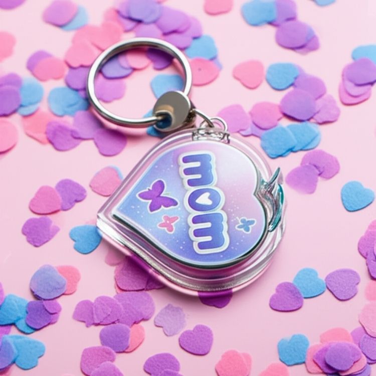 Show Mom some love with this adorable heart-shaped 'Mom' keychain! Featuring delicate butterfly decorations, this keychain makes a thoughtful and affordable Mom gift for the school holiday gift shop. Packaged for retail sale, this is a great item for students to purchase. Recommended for ages 12 and up.
