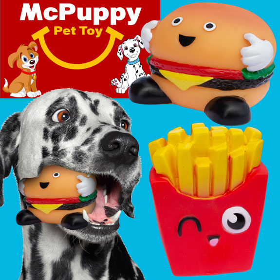 Squeaky Dog Toy. Asst. Hamburger and Fries sold seperatly.