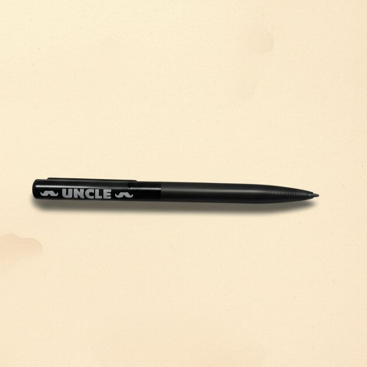 Looking for a fun and affordable gift for the kids to buy for their Uncle? This personalized 'Uncle' pen is a perfect choice! This black ballpoint pen features 'Uncle' and mustache icons, making it a unique and memorable gift. Great for Santa Shops, school holiday gift shops, and other fundraising events. Stock up on these popular Uncle Gifts today!